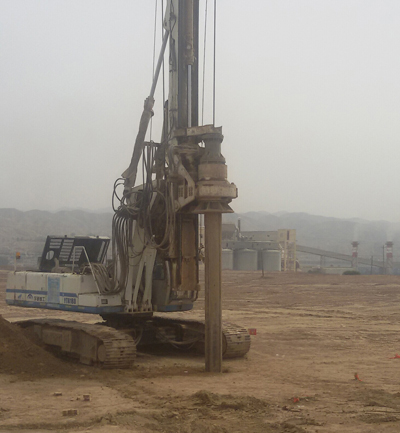施工內容及工程量:樁位測放,成孔、鋼筋籠制作安裝,旋挖鉆機成孔,混凝土攪拌,凝土灌注,泥漿渣土處理等工作。完成樁徑800mm的灌注樁273根,樁長55m,充盈系數為1.037。