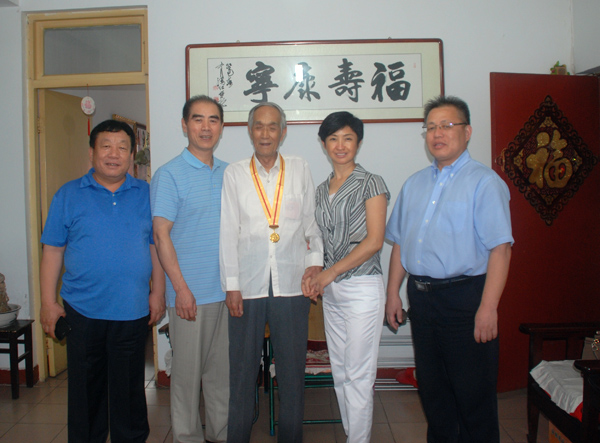 8月31日,在世界反法西斯戰爭勝利70周年來臨之際,省住建廳機關黨委書記王國章、離退辦處長趙月華,在總經理李華偉、副總經理張樹臣陪同下,看望慰問了曾參加過抗戰工作的離休老干部王福明同志,并帶來“中國人民抗日戰爭勝利70周年紀念章”和慰問金。
