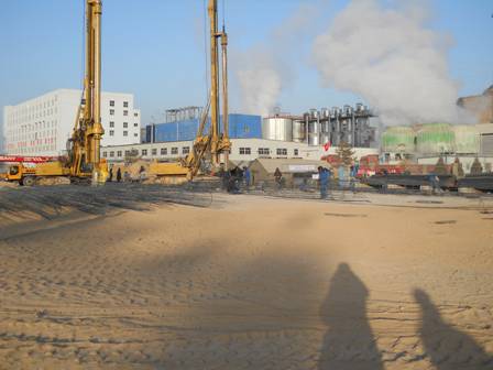 該工程施工種類較多,主要包括旋挖鉆孔灌注樁、灰土擠密樁和商品混凝土。我公司共完成旋挖鉆孔灌注樁樁基工程共完成1604根,施工了樁徑800mm的樁基667根,其中旋挖擴(kuò)底的114根,后壓漿施工的297根;樁徑1000mm的樁基937根,其中旋挖擴(kuò)底的58根,后壓漿施工的779根,設(shè)計混凝土方量20614.24方,樁身混凝土強(qiáng)度等級為C25和C30。樁孔直徑Φ400mm,樁長6.0m,樁距1m,正方形布置的灰土擠密樁共完成2312根,樁孔直徑Φ400mm,完成延米15028m。