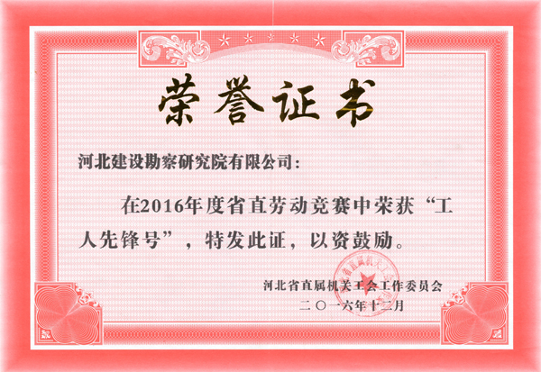 根據(jù)河北省直屬機(jī)關(guān)工會工作委員會2月27日發(fā)布的冀直工【2017】4號文件《河北省直屬機(jī)關(guān)工會工委關(guān)于2016年度勞動競賽情況的通報》,對在2016年度勞動競賽活動中成績突出的單位和個人進(jìn)行表彰。其中,包括我公司在內(nèi)的48個單位被評為省直“工人先鋒號”。
