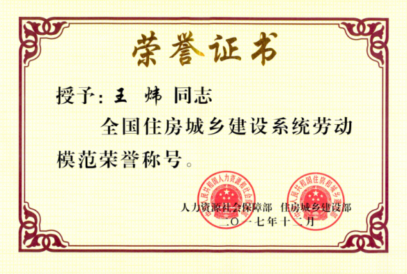 為進一步激勵全國住房城鄉(xiāng)建設(shè)系統(tǒng)廣大干部職工的積極性和創(chuàng)造性,努力推動住房城鄉(xiāng)建設(shè)工作上新臺階,人力資源社會保障部、住房城鄉(xiāng)建設(shè)部在全國住房城鄉(xiāng)建設(shè)系統(tǒng)內(nèi),開展了先進集體和先進個人的評選活動。通過逐級推薦,由人力資源社會保障部和住房城鄉(xiāng)建設(shè)部最終審定,決定對197個先進集體,381名先進工作者,414名勞動模范進行表彰。我公司工會主席王煒同志榮獲全國住房城鄉(xiāng)建設(shè)系統(tǒng)勞動模范榮譽稱號。