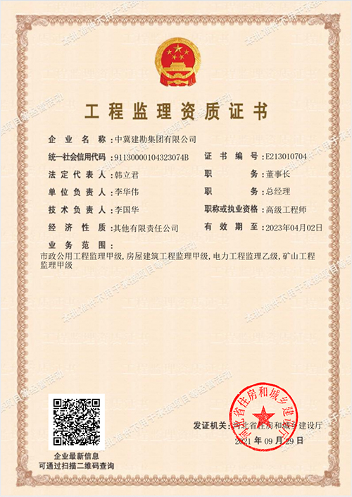 集團公司取得電力工程監理乙級、市政公用工程監理甲級資質證書