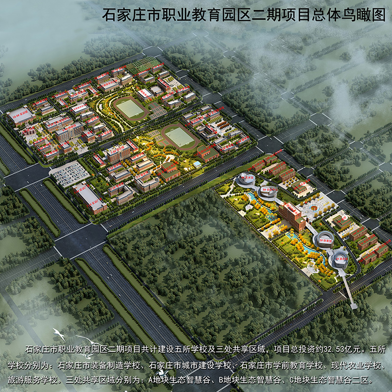此項目占地1200畝,投資約32億,總建筑面積60萬平方米,要求2019年9月5所學校開學使用。工期緊、任務重,結構形式多。我項目部針對此項目特點,組織了36人的監理隊伍,設總監理工程師1名,6個監理組及辦公室。在10個月的工期內完成了合同任務,得到了石家莊市教育局和正定新區管理處的好評。