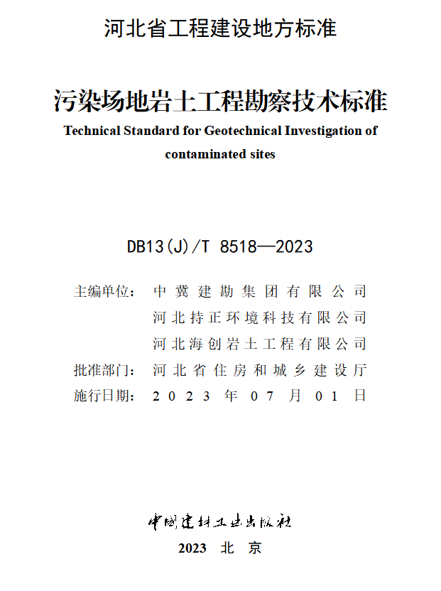 近日,我公司主編的河北省工程建設地方標準《地下智能立體停車庫技術標準》(DB13(J)/T 8500-2022)、《污染場地巖土工程勘察技術標準》(DB13(J)/T 8518-2023)由河北省住房和城鄉建設廳正式發布,并印刷出版發行,分別將自2023年5月1日和7月1日起實施。
