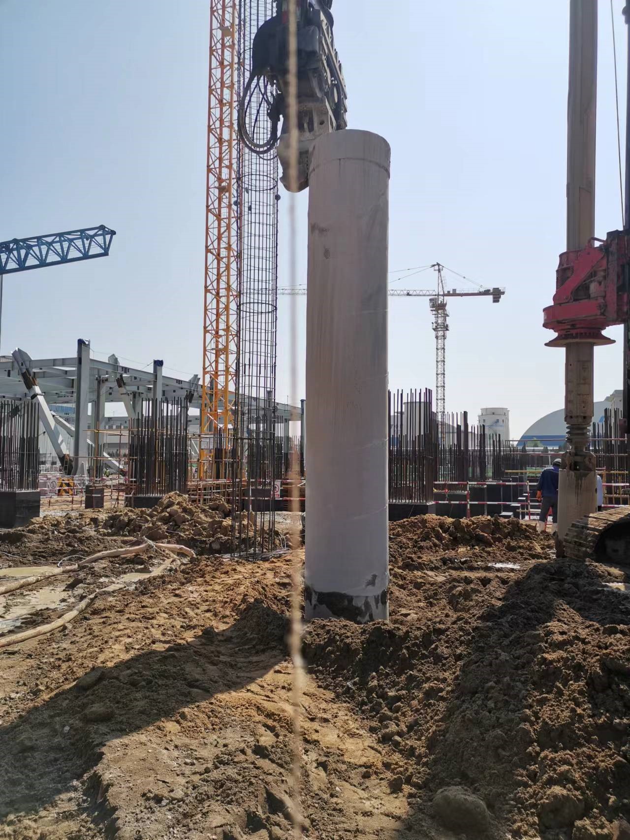 施工期間受中電建核電工程有限公司委托進行120T塔機樁基礎施工,包括6根樁徑800mm鉆孔灌注樁,樁長33.3m,灌注樁樁身采用強度等級C35混凝土。
