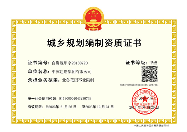 經(jīng)過10個(gè)月的精心準(zhǔn)備和實(shí)施,集團(tuán)公司于2023年6月26日通過了自然資源部城鄉(xiāng)規(guī)劃編制單位資質(zhì)審查,喜獲城鄉(xiāng)規(guī)劃編制單位甲級(jí)資質(zhì)。城鄉(xiāng)規(guī)劃編制單位甲級(jí)資質(zhì)是規(guī)劃行業(yè)的最高資質(zhì)等級(jí),該資質(zhì)的取得將有力促進(jìn)公司城鄉(xiāng)規(guī)劃編制業(yè)務(wù)開展,對公司轉(zhuǎn)型升級(jí)、地方市場開拓將起到重要作用,為公司持續(xù)穩(wěn)定發(fā)展奠定更加堅(jiān)實(shí)的基礎(chǔ)。
