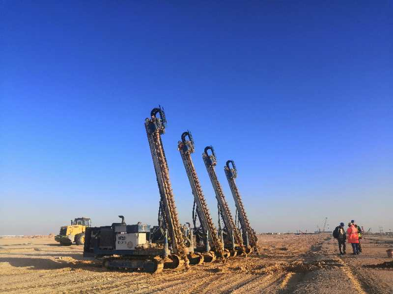 Dhafra PV2太陽能電站工程位于阿聯(lián)酋阿布扎比,由Dhafrah PV2 Energy Company LLC投資建設。工程共計完成直徑為300mm的H型鋼樁109504根,直徑為400mm的H型鋼樁34909根,混凝土包裹樁身2.05-2.8m。以及直徑為300mm的清掃機器人的樁1880根,直徑為450mm的機器人通訊塔的樁36根。