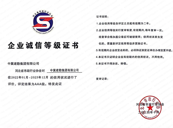 近日,河北省市政行業協會發文《關于公布2023年度河北省市政行業誠信企業名單的通知》[冀市協〔2024)26號〕,集團公司被認定為“河北省市政行業AAA級誠信企業”。這一榮譽的獲得必將激勵全體職工再接再厲,繼續發揮好示范引領作用,為帶動全省市政企業誠信經營、守信踐諾,進一步推動誠信體系建設做出更大努力,為市政行業高質量發展做出更大貢獻。