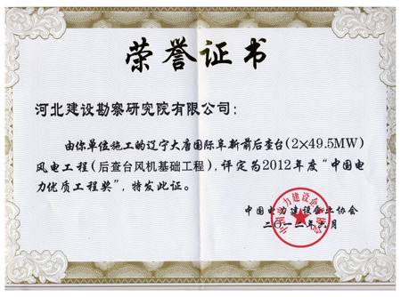 近日,由我公司參與施工的遼寧大唐國際阜新前后查臺2×49.5MW風電工程(后查臺風機基礎工程)被中國電力建設企業協會評定為2012年度“中國電力優質工程獎”。